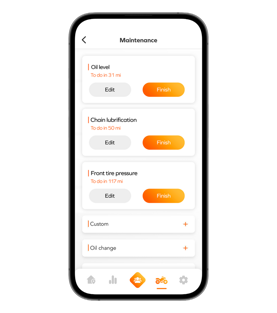Keep your motorcycle running smoothly with GeoRide. Receive timely reminders for essential tasks like tire pressure checks and chain lubrication.