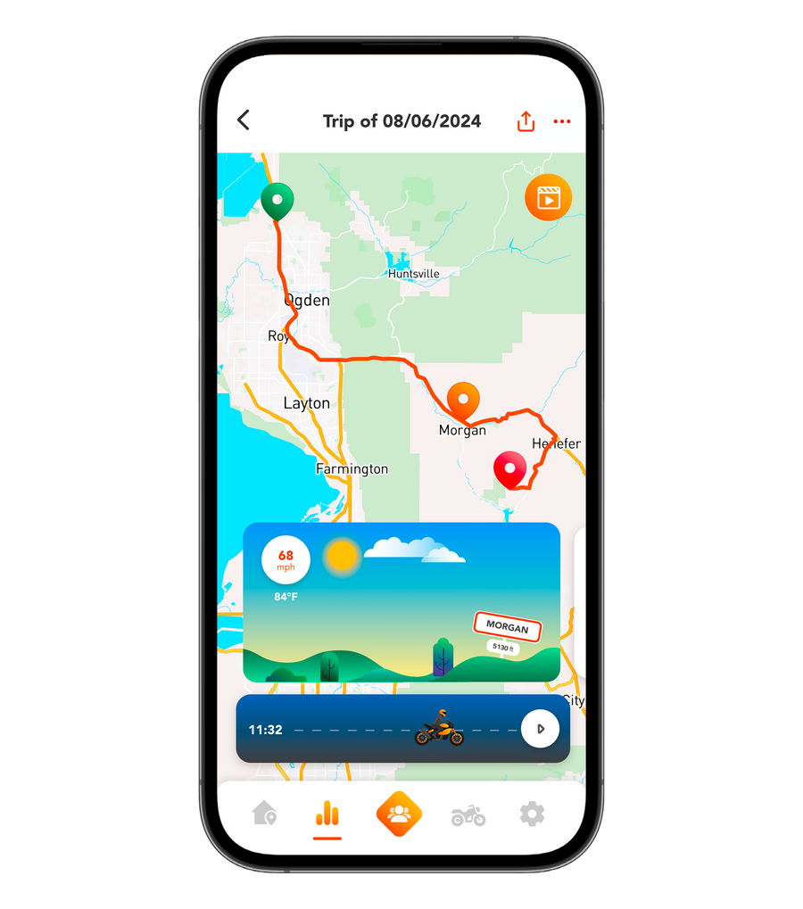 Turn your adventures into captivating videos with GeoRide, including route details, weather, and journey stats. Share the thrill of your ride with others.